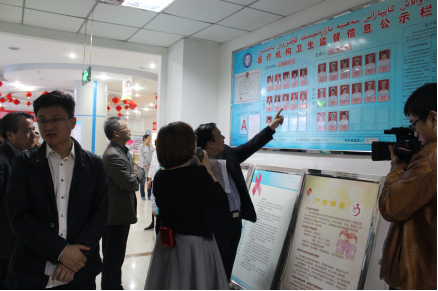 视察组查看医疗机构卫生监督信息公示栏
